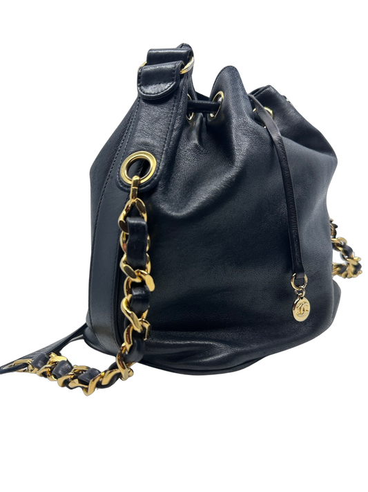 Chanel Black Lambskin Drawstring Bucket Bag